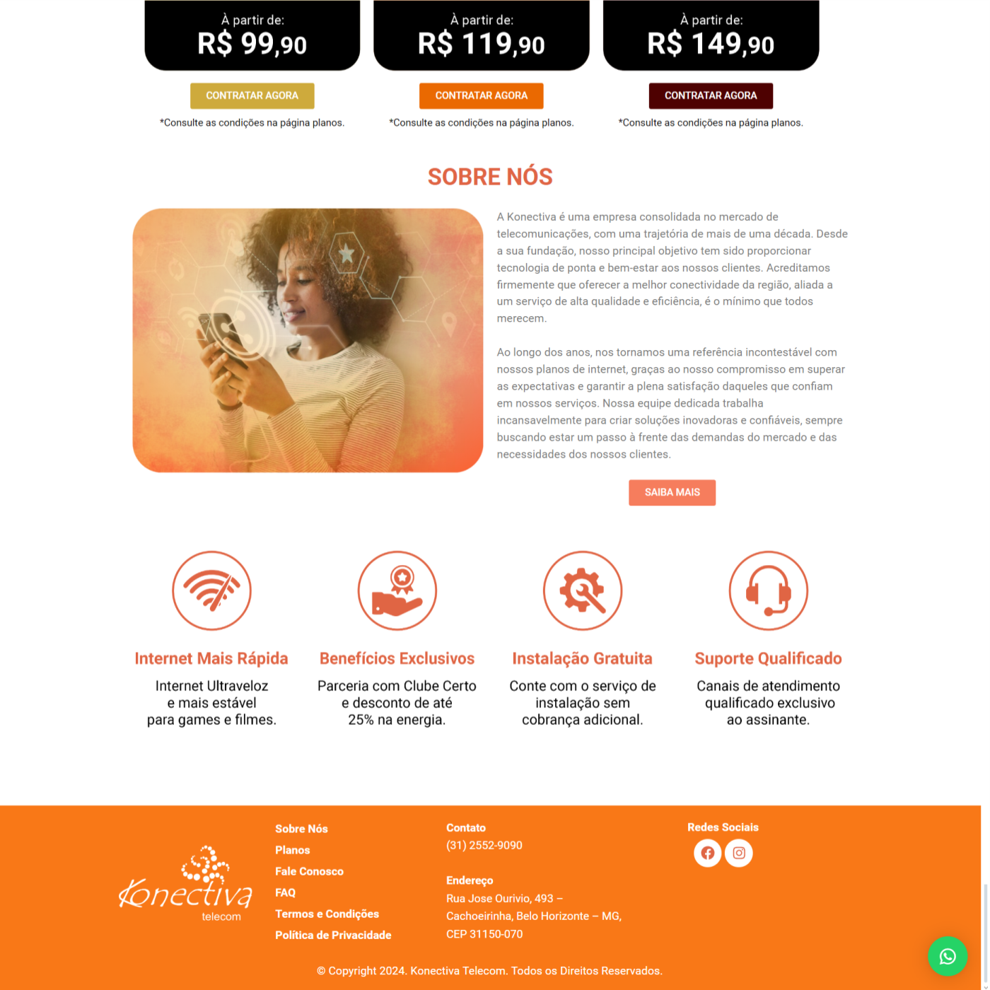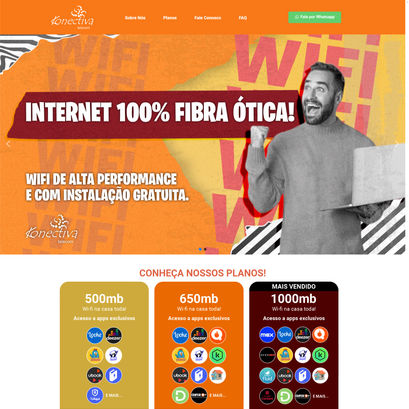 Projeto de site institucional para a empresa Konectiva, uma empresa consolidada no ramo de telecomunicações com uma trajetória de mais de uma década no mercado, onde desde a sua fundação, seu principal objetivo é de proporcionar tecnologia de ponta e bem-estar aos seus cliente. Meu objetivo principal foi de evidenciar seus planos, vantagens e diferenciais, com um site mais “limpo” e direto ao ponto.